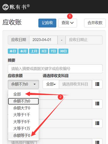 我们点应收余额下拉框,