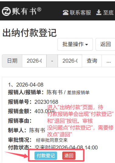 费用报销出纳付款登记如何操作