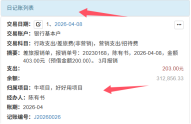3. 点击 【保存日记账】,付款完成!报销单状态自动变为 “已付款”,日记账同步更新,账目实时准确,下图所示: